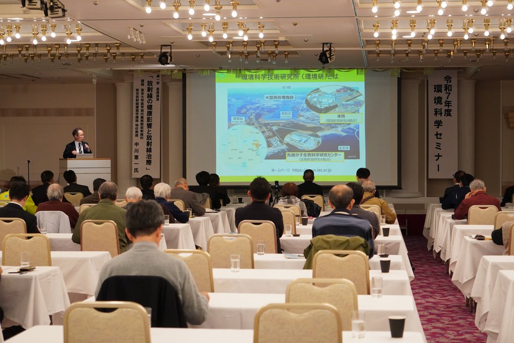 第二部では、環境科学技術研究所 環境影響研究部の 植田真司 から「環境中の放射性物質はどのように動くの? ~再処理工場から排出される放射性物質の動きを探る~」、また日本海洋科学振興財団 むつ海洋研究所の 小藤久毅 から「六ヶ所村周辺の海洋放射能」と題した研究成果が報告されました。